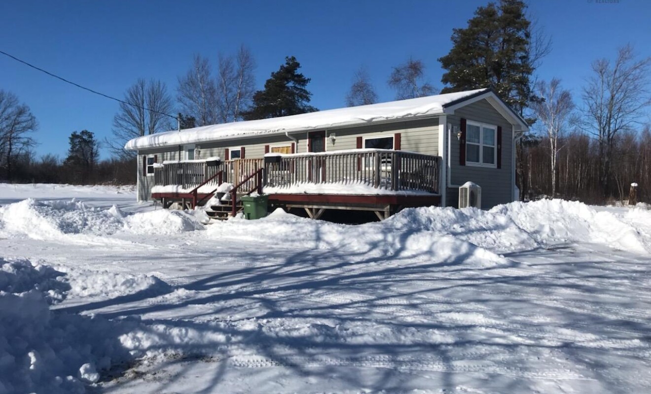 Very cozy completely renovated 14 x 58 mini home located on a quiet road near the village of River John, sitting on an ICF frost wall which may allow for easier financing. Boasting a brand new 175' deep well, pressure tank, wiring and piping which pumps 6-8 gallons of water per minute. The exterior has newer vinyl siding, new windows, doors and large decks on both the front and back with gates and a new steel roof! Inside you will find a lovely large living room with a nice propane fireplace, new counter tops with a modern sink, taps, an island with stools and a new dishwasher! The bathroom houses a soaker tub and elevated toilet and a new all in one washer/dryer that runs on 110 and doesn't need venting. The wiring is a newer 100 amp service panel with breakers allowing for many plugs throughout the home. The primary bedroom is large with a good size closet and nice windows allowing for natural lighting. The entire mini home is bright and cheery sitting on just under an acre of land with a circular driveway and a pond. Let's not forget that it is also located adjacent to the Trans Canada Trail great for ATVing, snowmobiling, walking, cross country skiing etc. Don't miss out on this one!