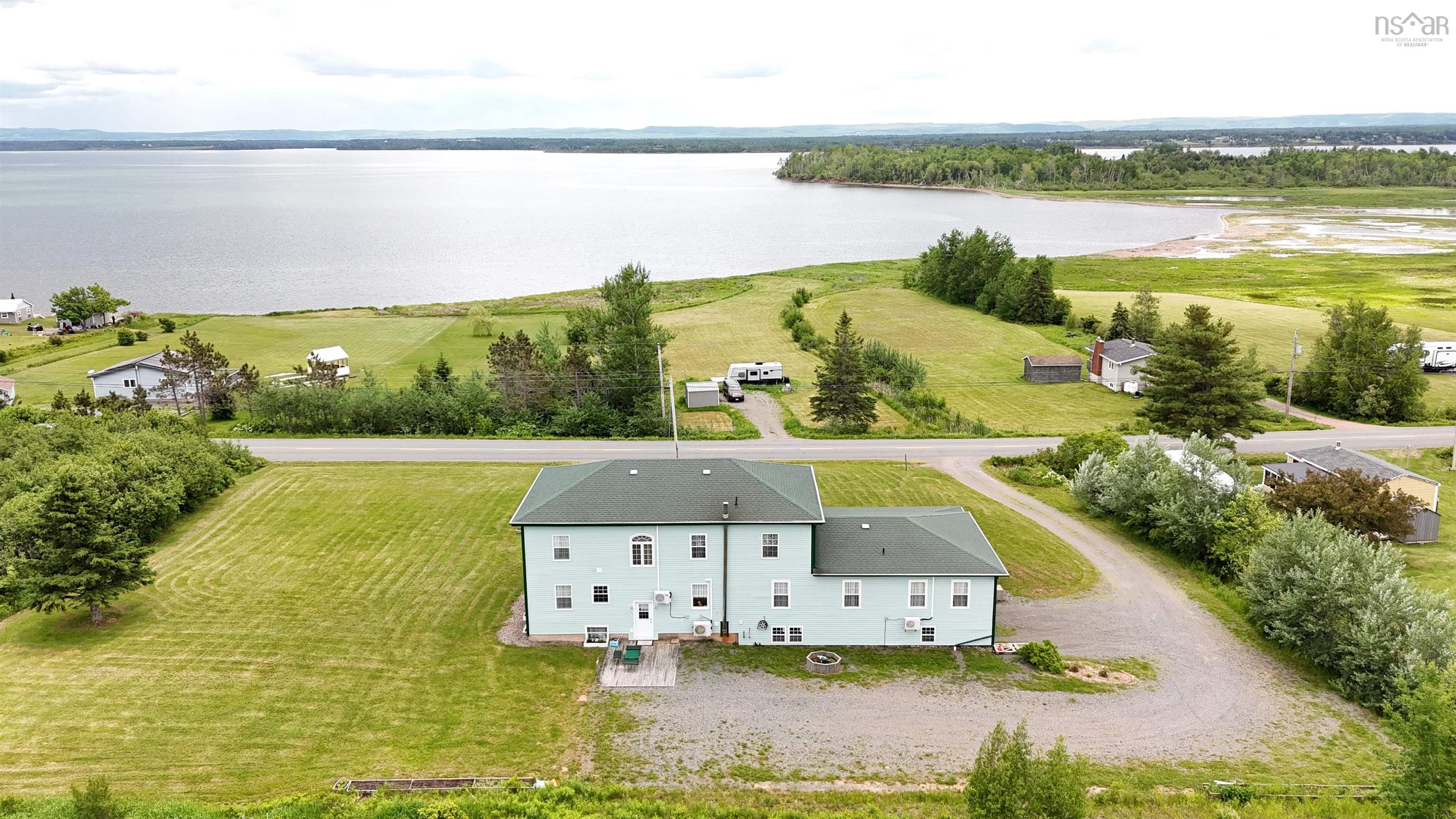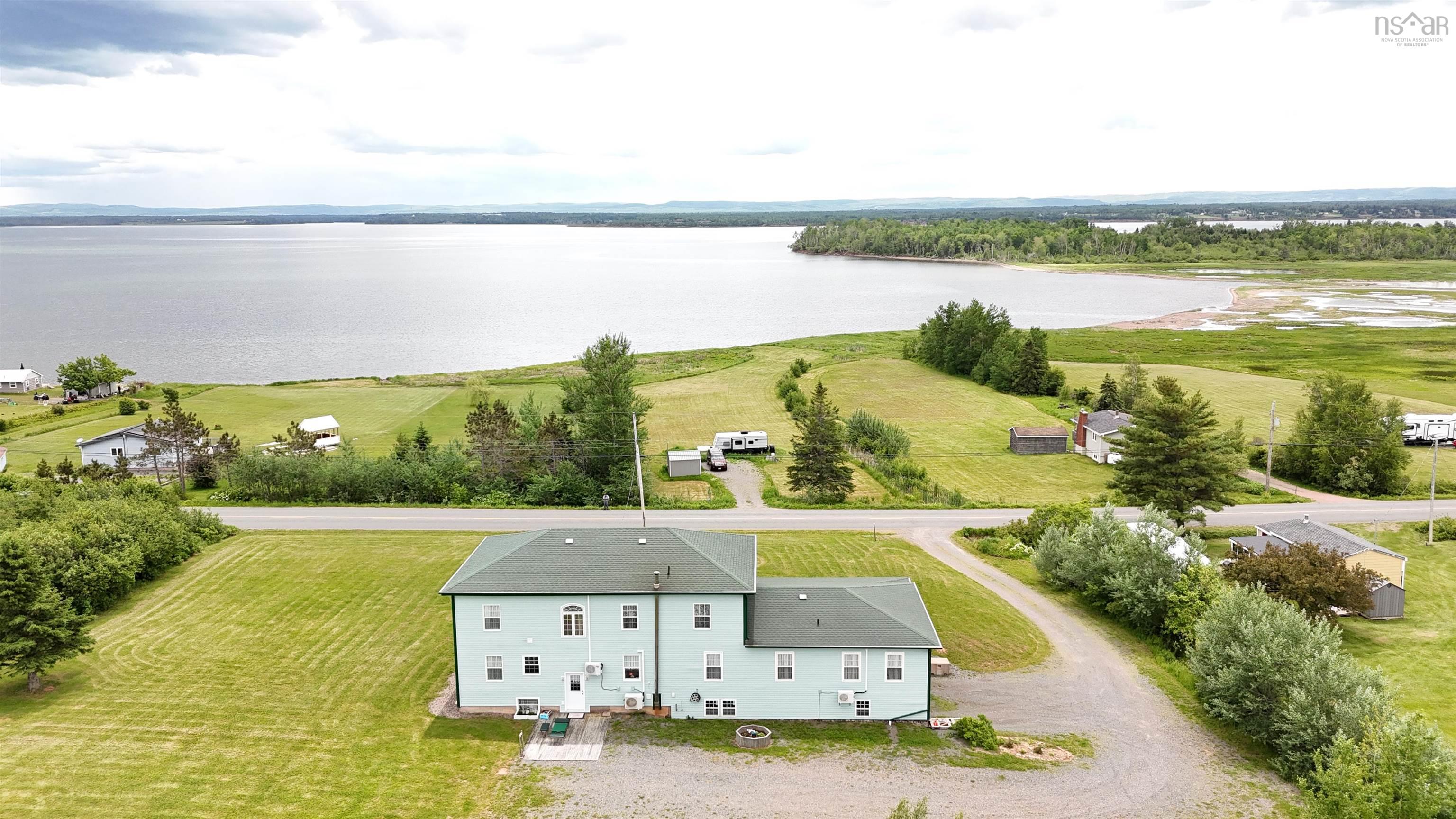 This beautiful home is perfect for the entrepreneurial you! Entirely renovated over the past 10 years, including all walls, flooring, electrical, plumbing, heating and more. This property is ready to be whatever you want it to be. The main floor has the primary bedroom, with full bathroom and laundry, commercial kitchen plus regular kitchen, two dining rooms, a large open living room, and a two-bedroom suite with bath. The second floor has four suites, all with ensuite baths, and the lower level is completely barrier free with bedroom, bathroom, TV/living room, dining area and rec room. This level also has a craft room, workshop and utility room. The lower level has two doors to the two-vehicle built in 28 x 22 garage making it totally barrier free. There is hot water baseboard heat with a newer oil furnace, as well as four heat pumps. Deeded access to the beach is just across the road, and sitting on the full length patio gives beautiful water views. The Village of Tatamagouche is just 10 minutes away for all amenities, there’s a number of golf courses in the area and of course beautiful sandy beaches! This is a very well maintained property, just waiting for new owners!